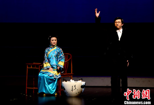 3月27日,由北京交通大学话剧团的学生们创作演出的原创话剧《茅以升》当日在天佑会堂举行首演。中新社发 陆欣 摄