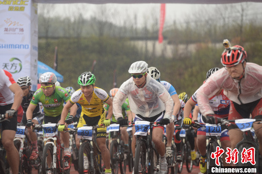 3月29日,参赛选手在比赛中。 当日,第九届中国黄山国际山地车公开赛在安徽黄山市黟县油菜花海中正式开赛,本次赛事29日开赛为期两天,共吸引了国内外山地车选手近1600人参赛。中新社发 张娅子 摄