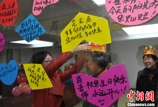 3月30日,十多位三月过生日的空巢老人齐聚一堂,集体过了个意义不一般的生日。中新社发 韩苏原 摄