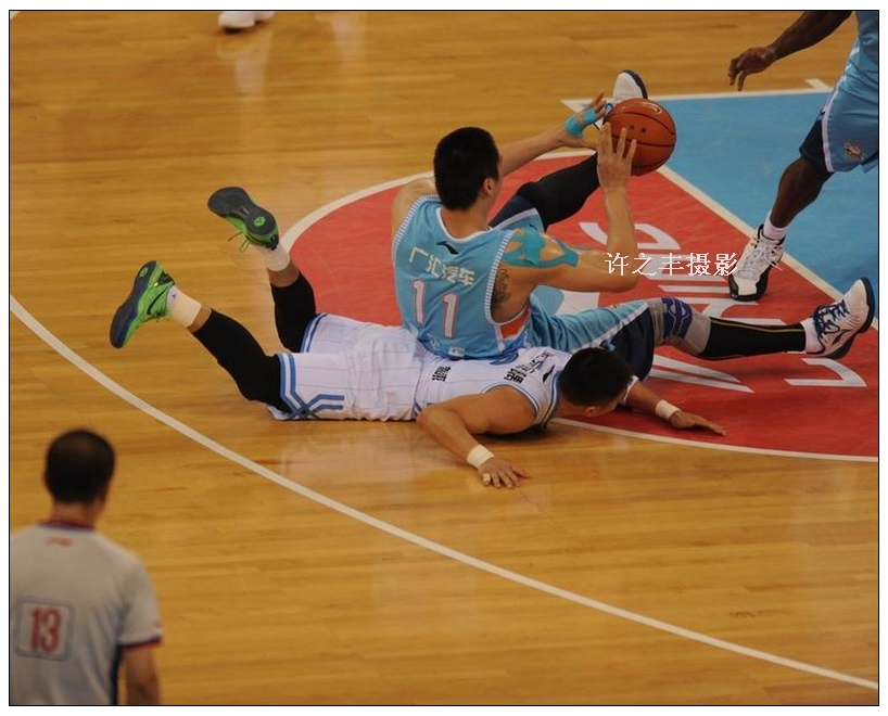 2014年3月28日,CBA总决赛第五场比赛,北京主场80比83负新疆,双方总比分变成2比3。在比赛中双方的一次拼抢,北京队李学林身高1.73体重75公斤,是两队最矮体重最轻的球员,而新疆队唐正东身高2.13体重115公斤,是两队最高体重最重的球员;小个子李学林已拿到球后被大个子唐正东压在地板上抢走手中的篮球。二百多斤的巨人压在一个普通人的身上也许都会断了气儿,然而13号裁判就站在旁边却视而不见比赛继续......工人日报-中工网记者许之丰摄影报道