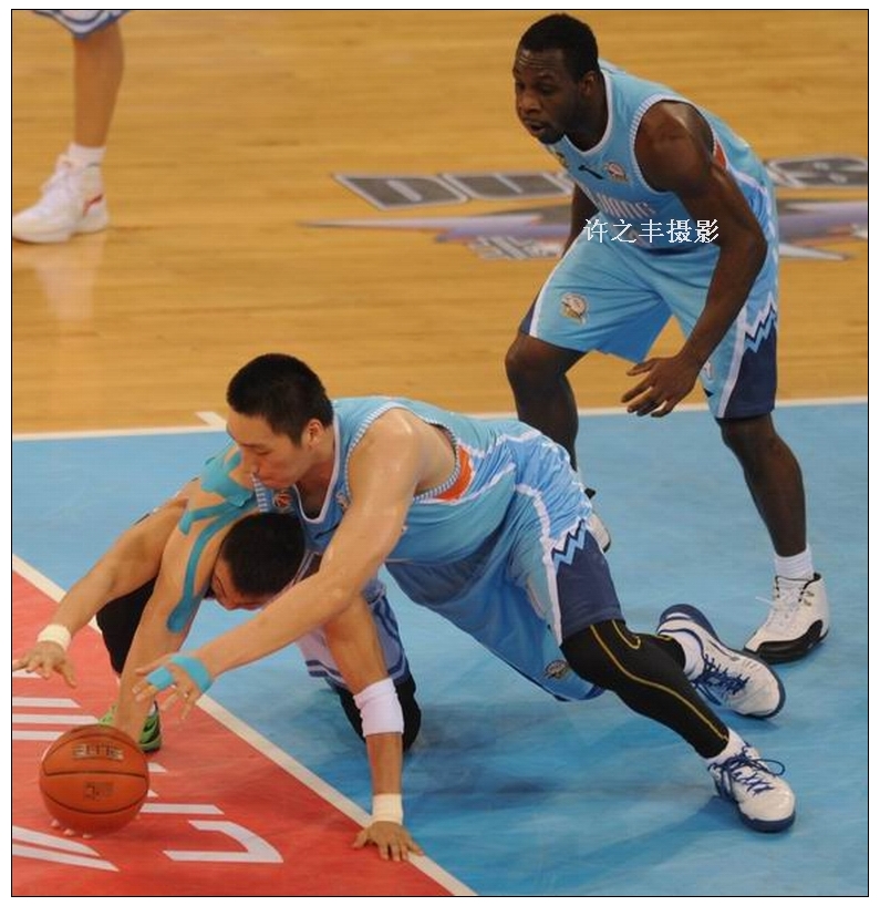 2014年3月28日,CBA总决赛第五场比赛,北京主场80比83负新疆,双方总比分变成2比3。在比赛中双方的一次拼抢,北京队李学林身高1.73体重75公斤,是两队最矮体重最轻的球员,而新疆队唐正东身高2.13体重115公斤,是两队最高体重最重的球员;小个子李学林已拿到球后被大个子唐正东压在地板上抢走手中的篮球。二百多斤的巨人压在一个普通人的身上也许都会断了气儿,然而13号裁判就站在旁边却视而不见比赛继续......工人日报-中工网记者许之丰摄影报道