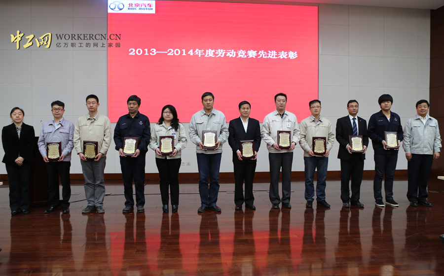 3月31日,北汽股份工会“建功十二五 岗位争先锋”劳动竞赛2013-2014年度表彰推进大会与第二届职工创新论坛隆重召开,北京市总工会工业(国防)工会主席顾庆、中国机冶建材工会原副局级巡视员、机械工作部部长、中国机械工业质量管理协会副会长王建和、市总工会经济技术部部长刘麦菲、北汽集团、北汽股份党委副书记李志立、北汽集团党委常委、北汽股份公司总裁李峰、北汽集团党委常委、工会主席、北汽股份公司副总裁张辉、北汽股份工会主席李承军以及百名竞赛明星代表、劳动竞赛先进集体代表、职工“四小创新”成果获奖项目代表、股份直属各单位工会主席和工会干部近200人参加会议。