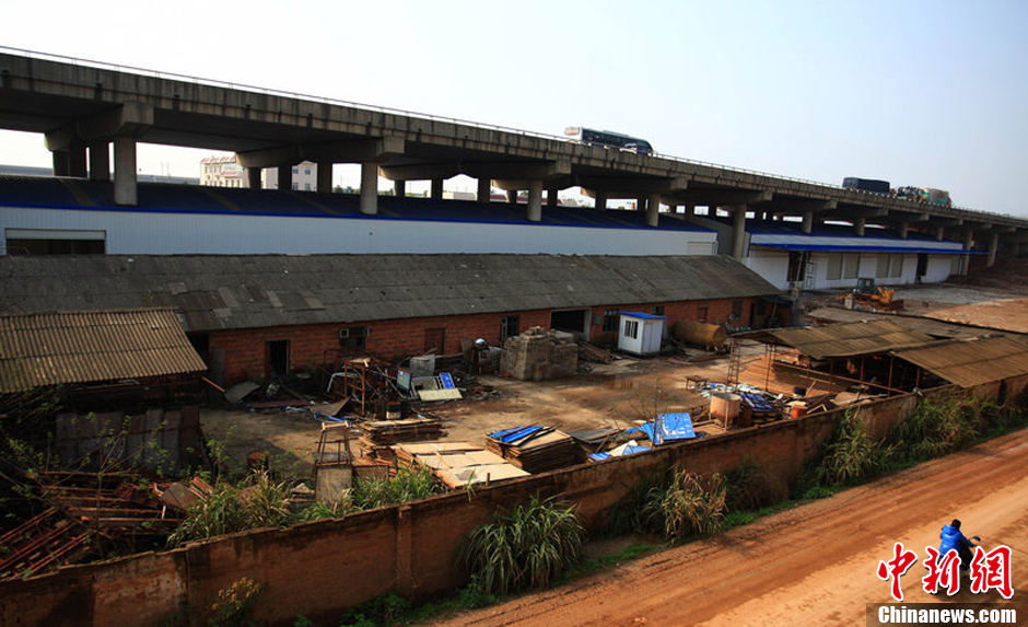 京珠高速公路星沙段水渡河大桥桥墩下出现四个标准仓库,约五六千平方米,五六米高,仓库顶距离高速公路路面只有四五米高。