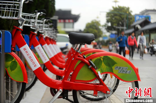 为解决日益突出的城市交通拥堵问题,3月31日,江苏省扬州市推出首个公共自行车租赁服务系统,设置140个站点,首期投放5000辆公共自行车供游客、市民骑行,并采用1小时内骑行免费、超过1小时实行阶梯性收费的规则。公共自行车的使用不仅有利于缓解因机动车过多造成的交通拥堵和困扰城市公交的“最后一公里”难题,也让人们的出行更加绿色低碳。