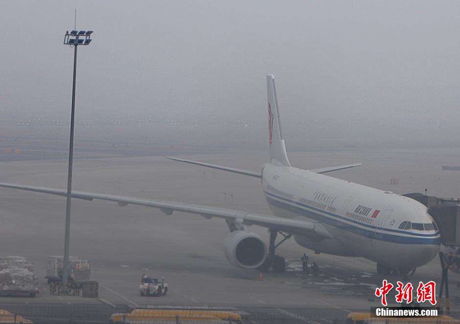 4月1日清晨,大雾弥漫北京,首都机场所处东北郊雾气尤重,部分航班延误。中新社发 任晨鸣 摄