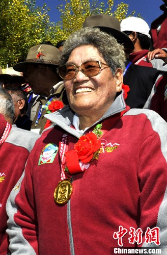 中国藏族女性登山家潘多,于3月31日在无锡的医院因糖尿病并发症医治无效逝世,享年75岁。潘多1975年成功登顶世界海拔最高峰珠穆朗玛峰,成为世界上第一位从北坡登上珠穆朗玛峰的女性登山者。图为潘多2010年9月资料图片。中新社发 李林 摄