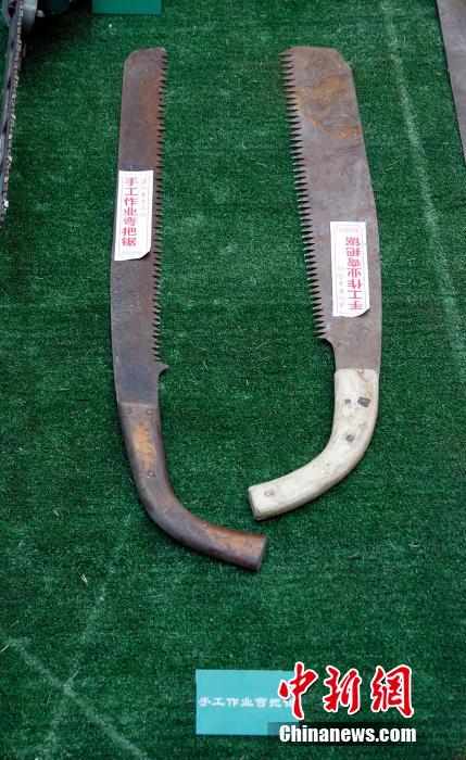 图为六十年代采伐工人的采伐工具。中新社 胡迪 摄