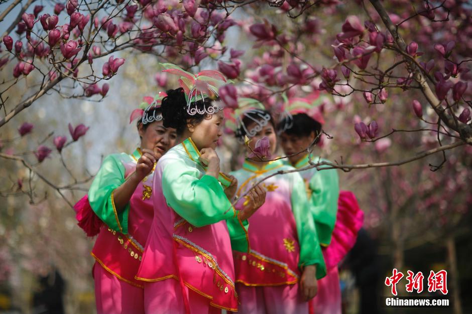 4月1日,市民在北京国际雕塑公园内有手机拍摄盛开的玉兰花。作为石景山区春季主打旅游活动之一的2014踏青季暨第十一届玉兰文化节在北京国际雕塑公园举办,5000余株玉兰吸引不少市民到此赏花。石景山区春季旅游活动由石景山区旅游委、石景山区公园管理中心共同主办,由石景山区各主要景区点承办,活动主题为“踏春品香石景山”,时间为4月至5月。中新社发 盛佳鹏 摄