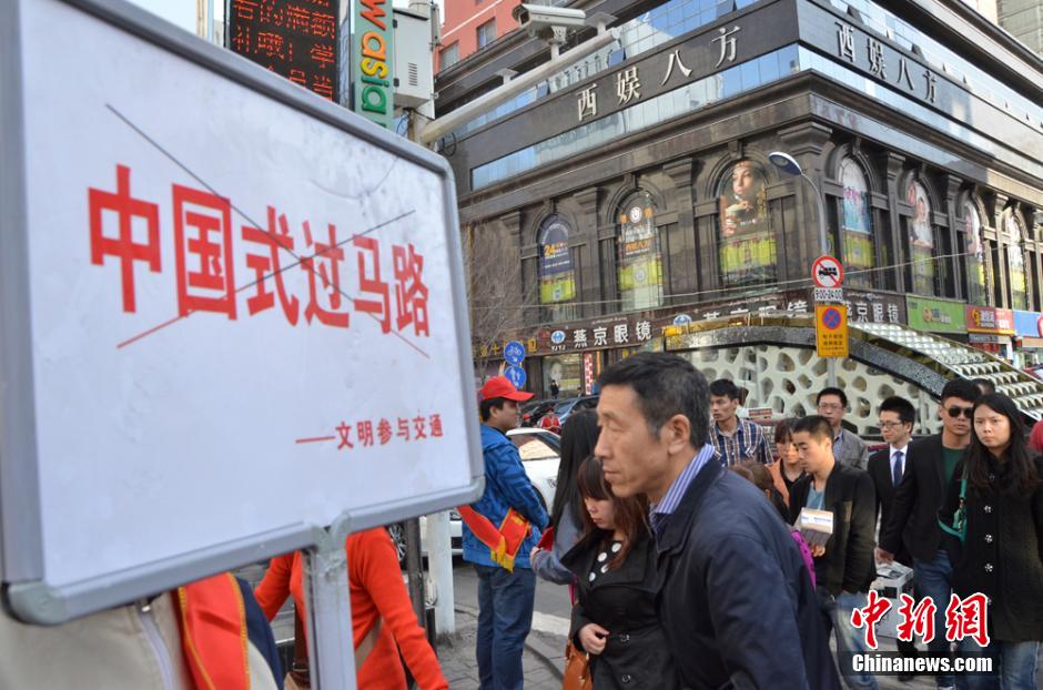 4月1日,乌鲁木齐“文明交通出行”公益宣传活动仪式在乌鲁木齐市街头举行。自即日起,该市将针对市民闯红灯、翻护栏等13项交通不文明行为将进行5元至50元罚款。孙亭文 摄
