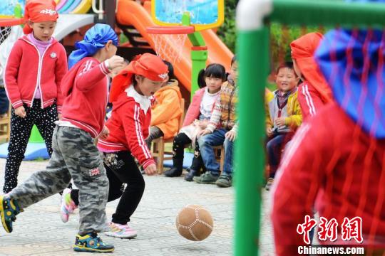 图为小朋友们进行“蹴鞠”比赛。王思哲 摄