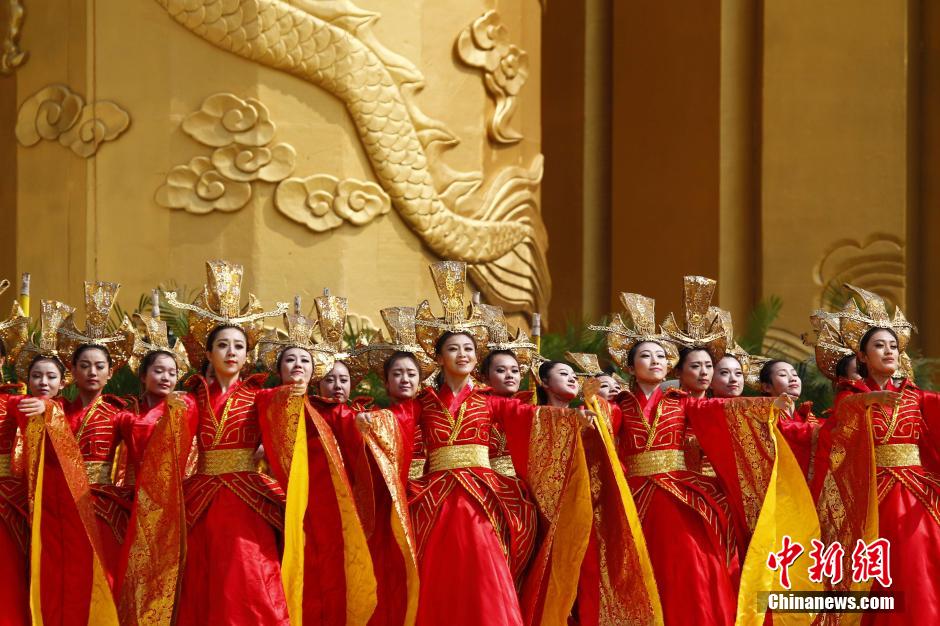 4月2日上午,乐舞祭拜人文始祖黄帝。当日,甲午年黄帝故里拜祖大典在新郑市黄帝故里景区举行。大典沿承规制,共有“敬献花篮”“净手上香”“祈福中华”“高唱颂歌”等九项仪程。中新社发 王中举 摄