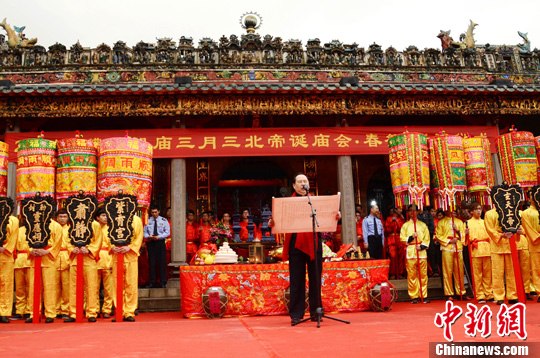 4月2日,北帝神诞,广东佛山祖庙举行北帝巡游、祈福肃拜及酬神唱戏、庙会集市等祈福活动。中新社发 龙宇阳 摄