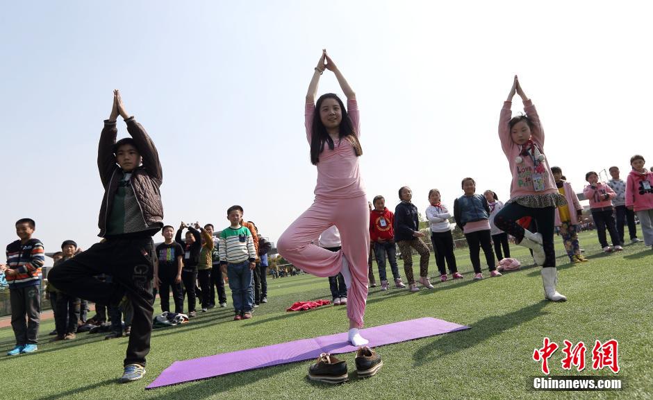 4月2日,孩子们与南京青奥会吉祥物砳砳一同做游戏。当日,南京农业大学工学院的大学生志愿者们和来自巴基斯坦、伊朗的留学生代表走进浦口泰山小学,开展“禾苗梦-关爱外来务工子女支教”系列活动之“对话青奥、心手相牵”青奥主题活动,互动瑜伽、拳击、跆拳道、曲棍球等部分青奥会运动项目,传递志愿服务精神,传播青奥文化。中新社发 泱波 摄