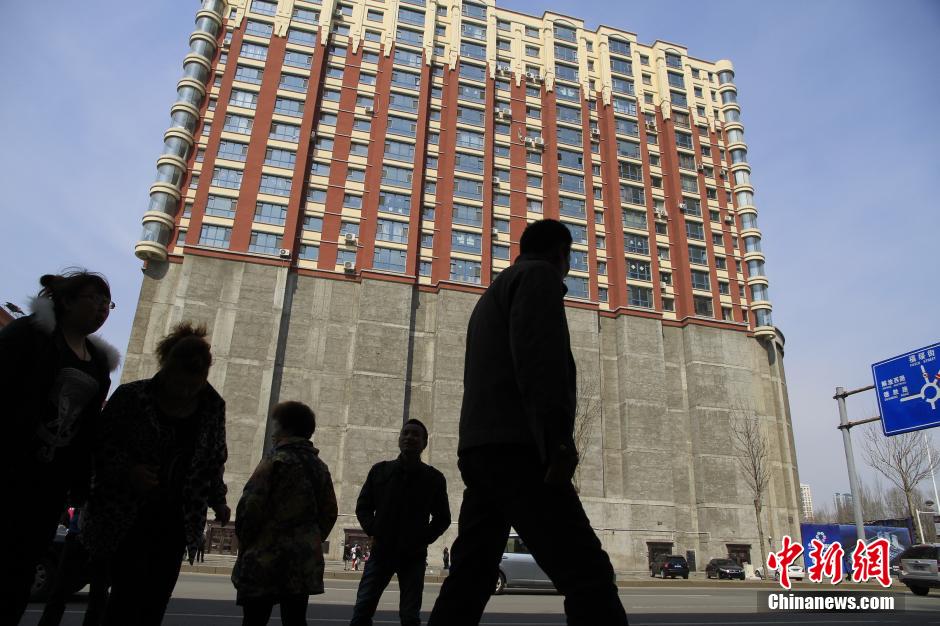 吉林现上下两截怪楼 一半居民楼一半水泥墙