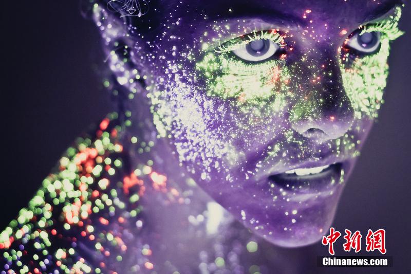 当地时间2014年4月3日报道,巴西籍摄影师Hid Saib用瑰丽的霓虹灯营造氛围,给模特脸上涂上特殊染料,用相机拍摄下未来人类的面庞。
