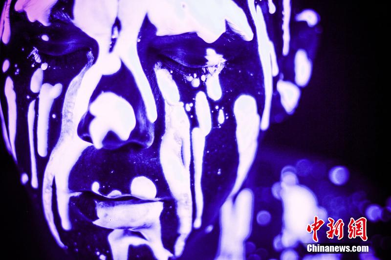 当地时间2014年4月3日报道,巴西籍摄影师Hid Saib用瑰丽的霓虹灯营造氛围,给模特脸上涂上特殊染料,用相机拍摄下未来人类的面庞。
