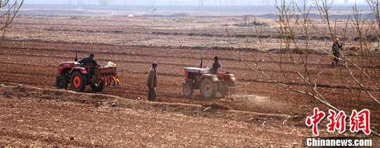 春天已至,作为国家主要粮食生产基地的内蒙古,各盟市已陆续拉开春耕大幕。在内蒙古土默特左旗只几梁乡寿阳营村,乡亲们正在春日暖阳里,赶着大好的时光辛勤的忙碌耕耘着。中新社发 尚军 摄