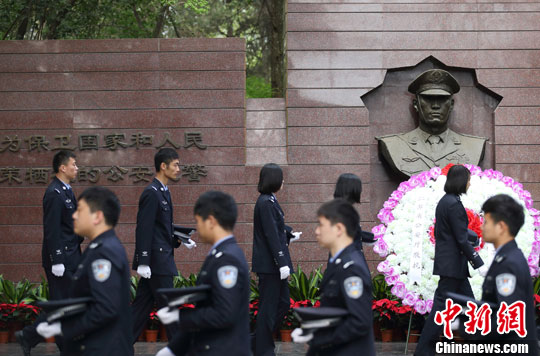 4月3日,民警代表、英烈家属代表、江苏警官学院师生代表等三百余人,来到位于南京雨花台烈士陵园内的江苏公安英烈纪念墙前举行祭奠仪式,缅怀英烈,寄托哀思。中新社发 泱波 摄