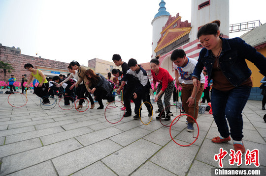4月3日,长沙世界之窗举办清明怀旧游戏,使大人们记忆犹新的童年游戏一一呈现。主办方表示,这些游戏可以让游客重温童年的快乐,在怀旧中寻找逝去的时间。 杨华峰 摄
