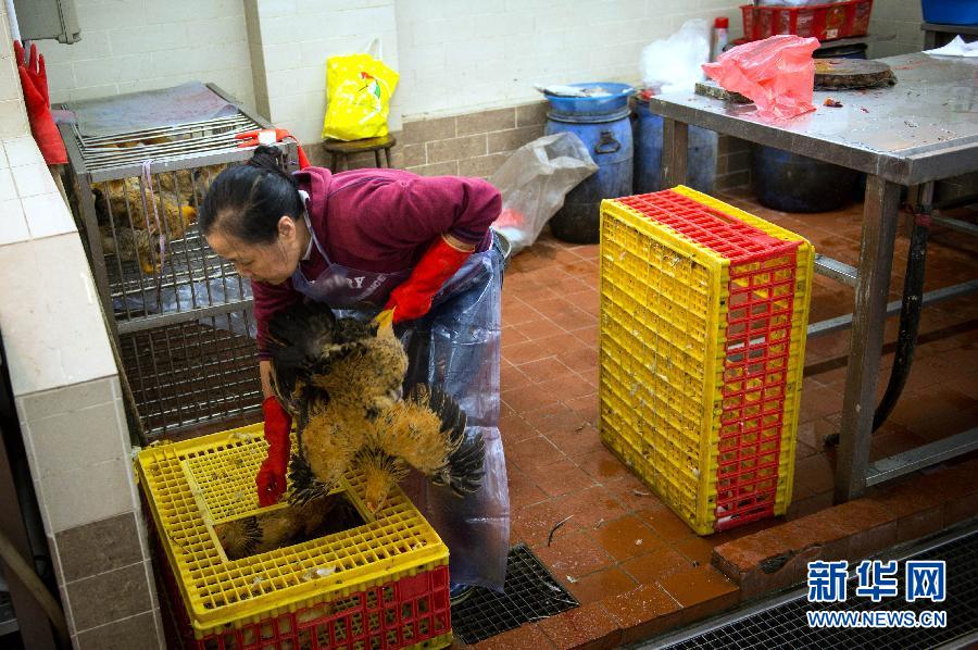4月4日,在澳门红街市,一名商贩在整理活禽。新华社记者张金加摄