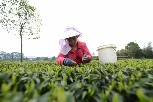 4月7日,正值清明小长假最后一天,湖南长沙县金井茶叶种植基地呈现茶农抢采“清明茶”的繁忙景象。