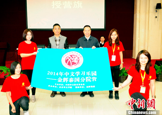 4月8日,由中国华文教育基金会主办、金辉集团赞助、北京华文学院承办的“2014中文学习乐园——金辉泰国分院营”在北京华文学院开营。中新社发 张勤 摄