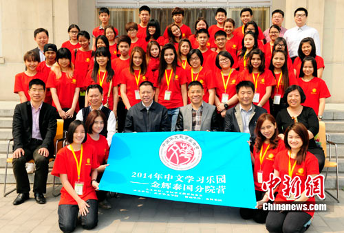 4月8日,由中国华文教育基金会主办、金辉集团赞助、北京华文学院承办的“2014中文学习乐园——金辉泰国分院营”在北京华文学院开营。来自泰国各地的40名华裔青少年将在北京进行为期一个月的中国语言和文化的学习和体验。中国华文教育基金会副秘书长李献国、北京华文学院院长助理曹正国等出席开营式。