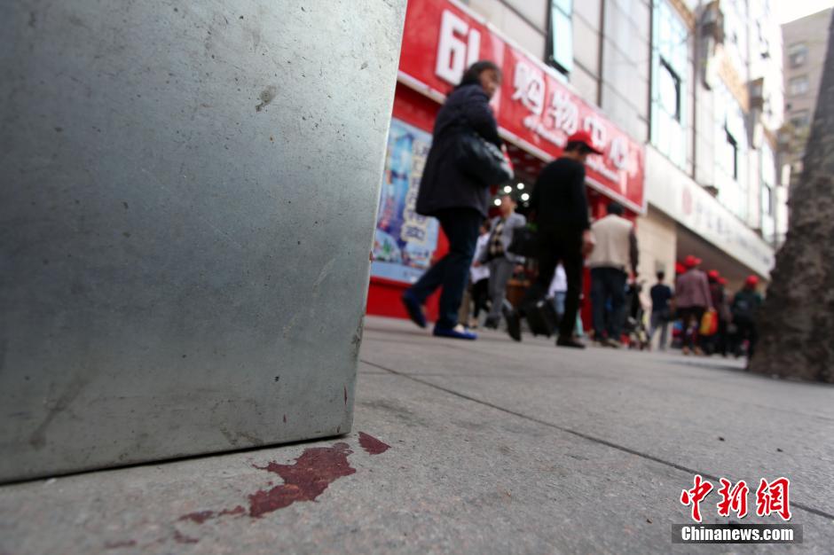 4月10日,上海南京东路沿街店铺发生一起伤人事件。事件或因商家与顾客发生纠纷引起,警方透露,两人被砍伤,一人大腿动脉出血,已送医抢救,另一人轻伤,事发后,行凶者逃离现场,目前仍在抓捕中。中新社发 申海 摄