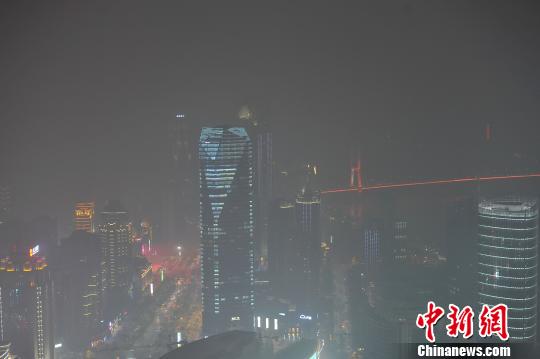 4月11日晚,被雾气笼罩中的南昌城市高楼建筑,在各色灯光的点缀下,依旧流光溢彩、梦幻唯美。刘占昆 摄
