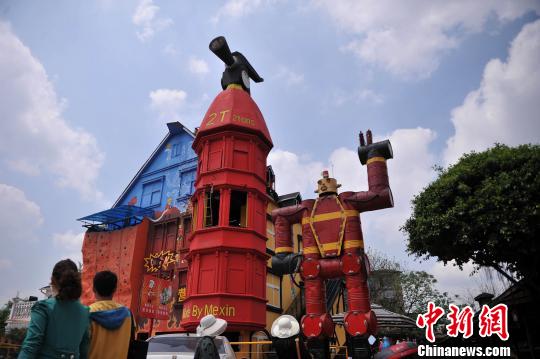 4月12日,重庆洋人街竖立起了一巨型“灭火器房屋”建筑。以灭火器的外形模拟建造的房屋吸人眼球。据悉,该房屋是正在完善中的消防体验馆。