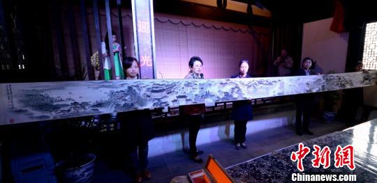 图为8.5米长卷《福村河阳图》首展仪式现场。 王思哲 摄