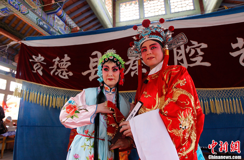 4月12日下午,秦腔艺人正在表演。青海的农民习惯上称秦腔为大戏,秦腔作为中国戏剧主要剧种之一,200多年前传入青海,在这片土地上经久不衰,传唱不止。目前,青海省有大小秦腔剧团上百家。每到农闲时节,或节庆活动,总能听见秦腔那高亢的曲调,极具魅力。