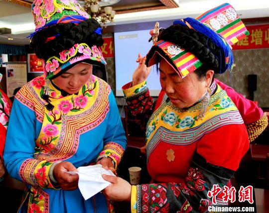 4月14日,四川阿坝州兴绣职业技能培训学校羌绣培训班在茂县中国古羌城开班,来自茂县县城和周边乡镇的80余名绣娘参加了开班式。图为学员练习针法。赵述旭 摄