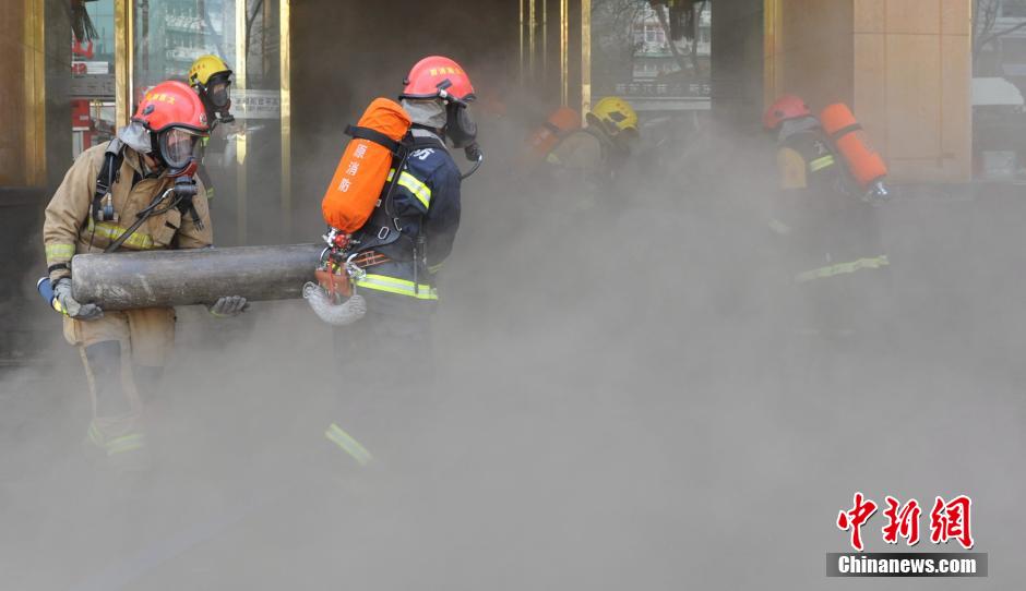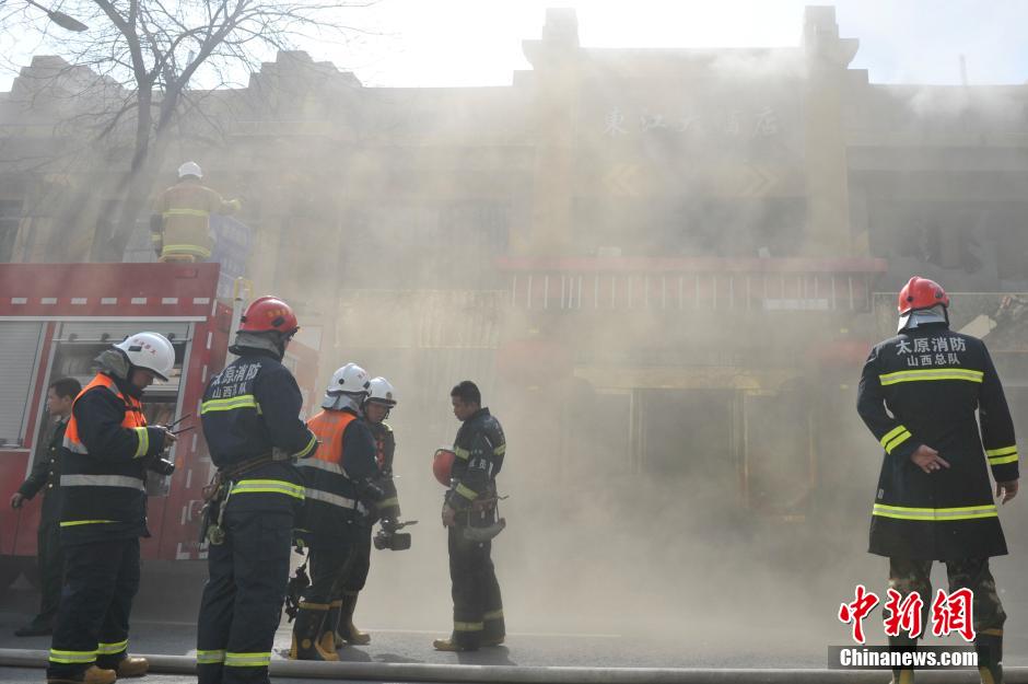 4月14日下午,山西太原一装修中的酒店发生火灾,浓烟滚滚。当地119指挥中心出动7个中队,25辆消防车,110名消防官兵赶赴现场灭火。据消防官兵称,此次火灾无人员伤亡,原因正在进一步调查中。中新社发 韦亮 摄