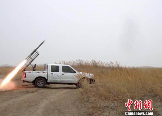 4月15日,甘肃金塔县气象局成功实施人工增雨作业,结束了全县68天无降水的状况,累积降水量3.5mm。王胜 摄该气象局表示,多年来,金塔县沙尘暴灾害较多,今年受干旱的影响隔几天就会有浮尘、沙尘等天气,此次人工增雨有效的降水,可以使得空气的湿度增加,进而可以遏制沙尘等天气的次数,有助于农作物的生长。