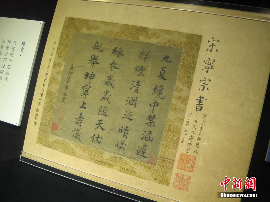 图为其中一件珍贵展品:中国南宋第4位皇帝宋宁宗的《楷书为坤宁生辰书诗》。中新社发 李焯龙 摄