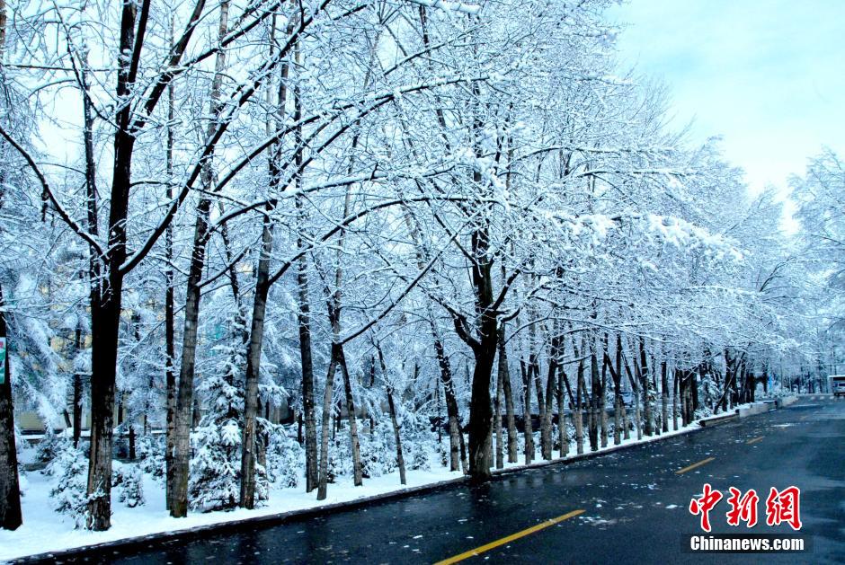 4月18日,一场春雪过后,地处祁连山脚下的青海省门源县雪景美不胜收。17日晚至18日上午,青海大范围降水,多地出现降雪天气。中新社发 鲁进才 摄