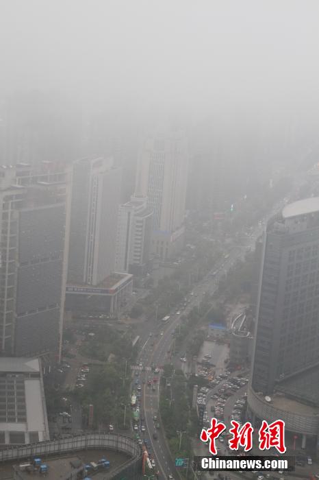 南昌迎降雨天气 城市建筑水雾环绕一片朦胧