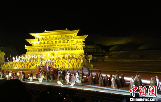 4月20日晚,西藏实景剧《文成公主》在拉萨再度开演,数十种当地非物质文化遗产元素首次融入该剧。中新社发 贡桑拉姆 摄