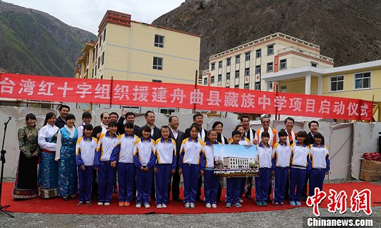 4月21日下午,台湾红十字组织援建甘肃舟曲县藏族中学多功能楼项目在当地举行开工奠基仪式。中新社发 丁思 摄