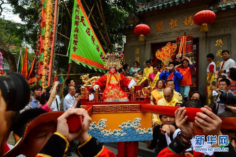 当日,澳门举行甲午年“妈祖诞” 、“马跃银河彩云献瑞贺宝诞”的祭祀和庆祝活动,同时为马航失联客机MH370举行祈福法事仪式。新华社记者张金加摄