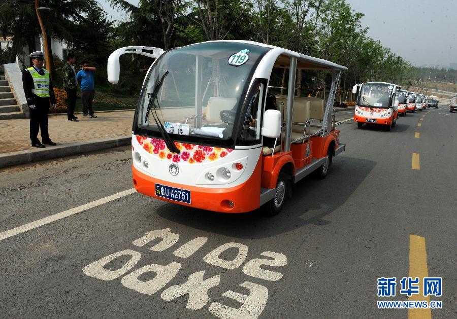 园区内的电瓶观光车试运行(4月22日摄)。新华社记者李紫恒摄