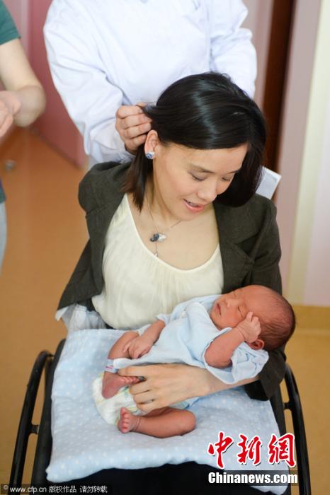 2014年04月23日,北京,桑兰在产子后与丈夫黄健一起首次公开亮相。
