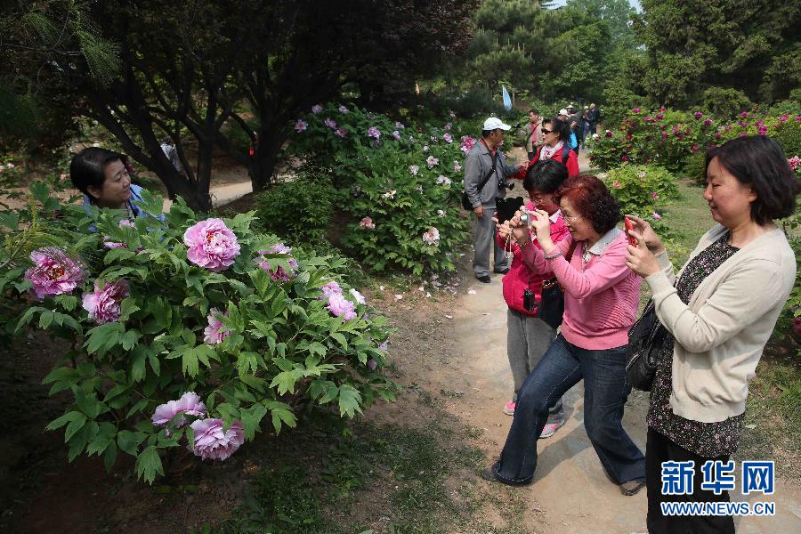 4月23日,在北京植物园,游客在花丛中留影。新华社记者 金立旺摄