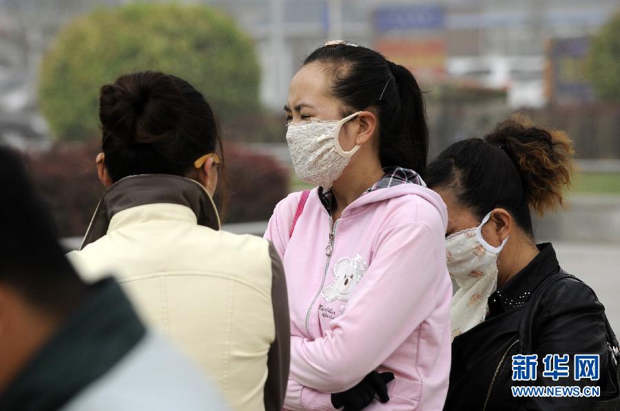 4月24日,在宁夏银川市光明广场,几位路人戴着口罩。新华社记者 李然 摄