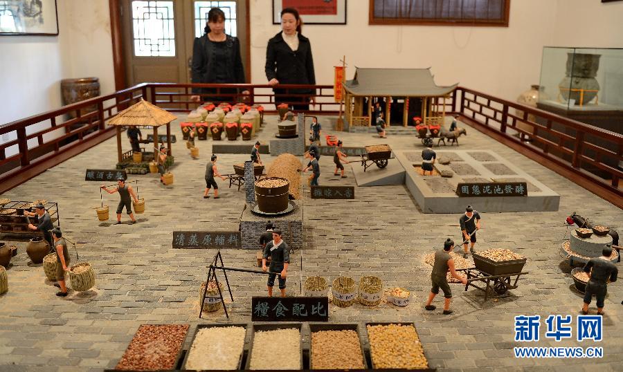 4月24日,游客在迁安市贯头山酒业有限公司通过微缩模型了解酿酒工艺流程。新华社记者杨世尧摄