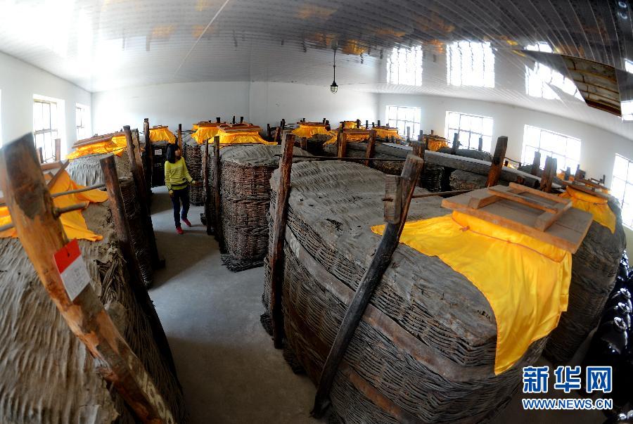 4月24日,游客在迁安市贯头山酒业有限公司参观从清代到现在一直使用的窖藏原浆的酒海子。新华社记者杨世尧摄