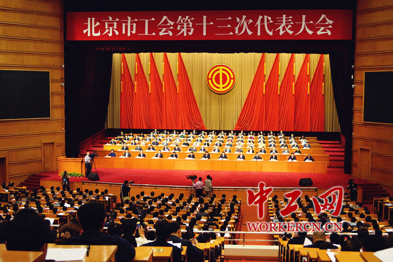 2014年4月24日上午,北京市总工会第十三次代表大会开幕。北京市委书记郭金龙,中华全国总工会副主席、书记处第一书记陈豪,市委副书记、市长王安顺,市政协主席吉林,市委副书记吕锡文,市政协原主席阳安江。市领导叶青纯、姜志刚、苟仲文、梁伟、戴均良,市政府秘书长李伟、市政协秘书长周毓秋一同出席了会议。中工网记者 葛姗 摄