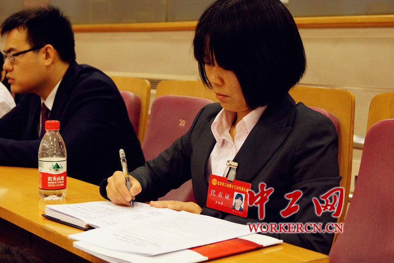 北京市委书记郭金龙在讲话中充分肯定全市广大职工群众积极投身首都建设和改革发展伟大实践做出的重要贡献。他指出,要贯彻落实习总书记重要讲话精神,建设国际一流的和谐宜居之都,必须全心全意地依靠首都工人阶级。全市各级工会要切实发挥桥梁纽带作用,把广大职工群众紧紧团结在党和政府周围,勇敢地担当起推动首都改革发展的重任。图为代表正在认真记录会议重点。中工网记者 葛姗 摄