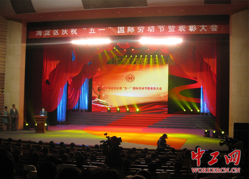 4月22日,北京市海淀区召开庆祝“五一”国际劳动节表彰大会,中华全国总工会、北京市总工会及海淀区总工会有关领导出席会议,并为获得2014年首都劳动奖章、北京市工人先锋号、首都劳动奖状的个人、集体,以及全国工人先锋号、全国五一劳动奖章获得者颁奖(中工网记者杨灵 摄)